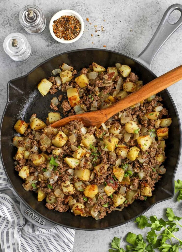 A warm and hearty skillet dinner made with ground beef, tender potatoes, and simple seasonings. This comforting meal comes together in one pan and makes a satisfying weeknight dinner for the whole family.
