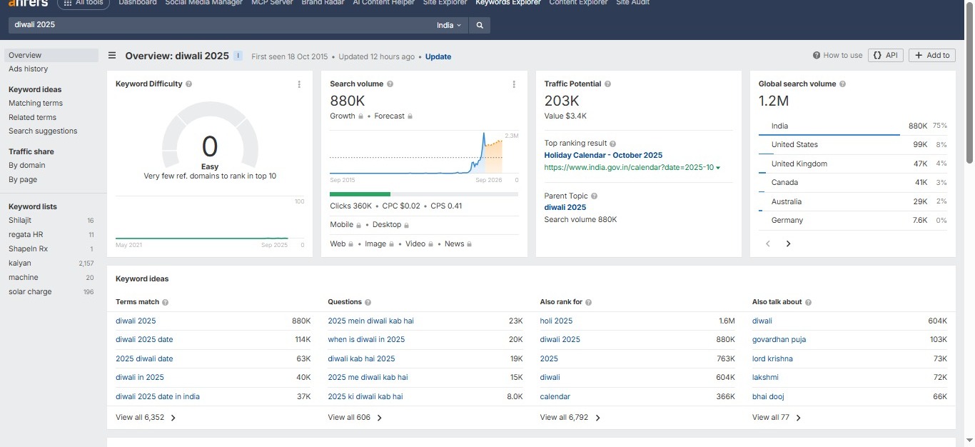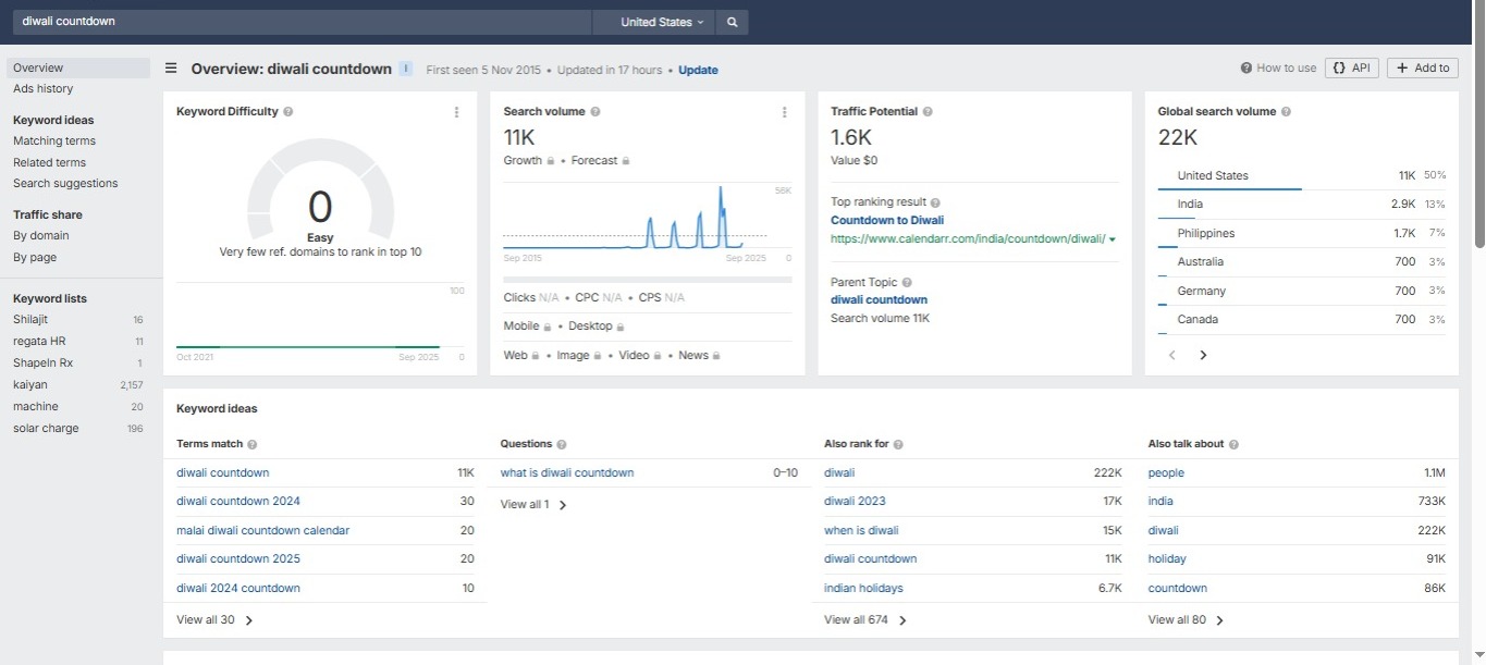 Keywords like Diwali Countdown and Diwali 2025 have very high search volume ?